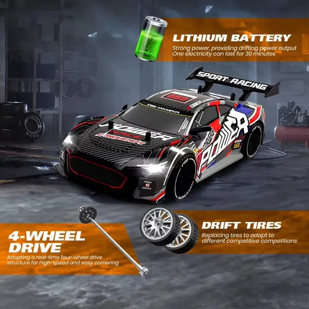 এই রিমোট কন্ট্রোল কারটি ডিজাইন করা হয়েছে বাস্তব ড্রিফট রেসিং অভিজ্ঞতা দেওয়ার জন্য।