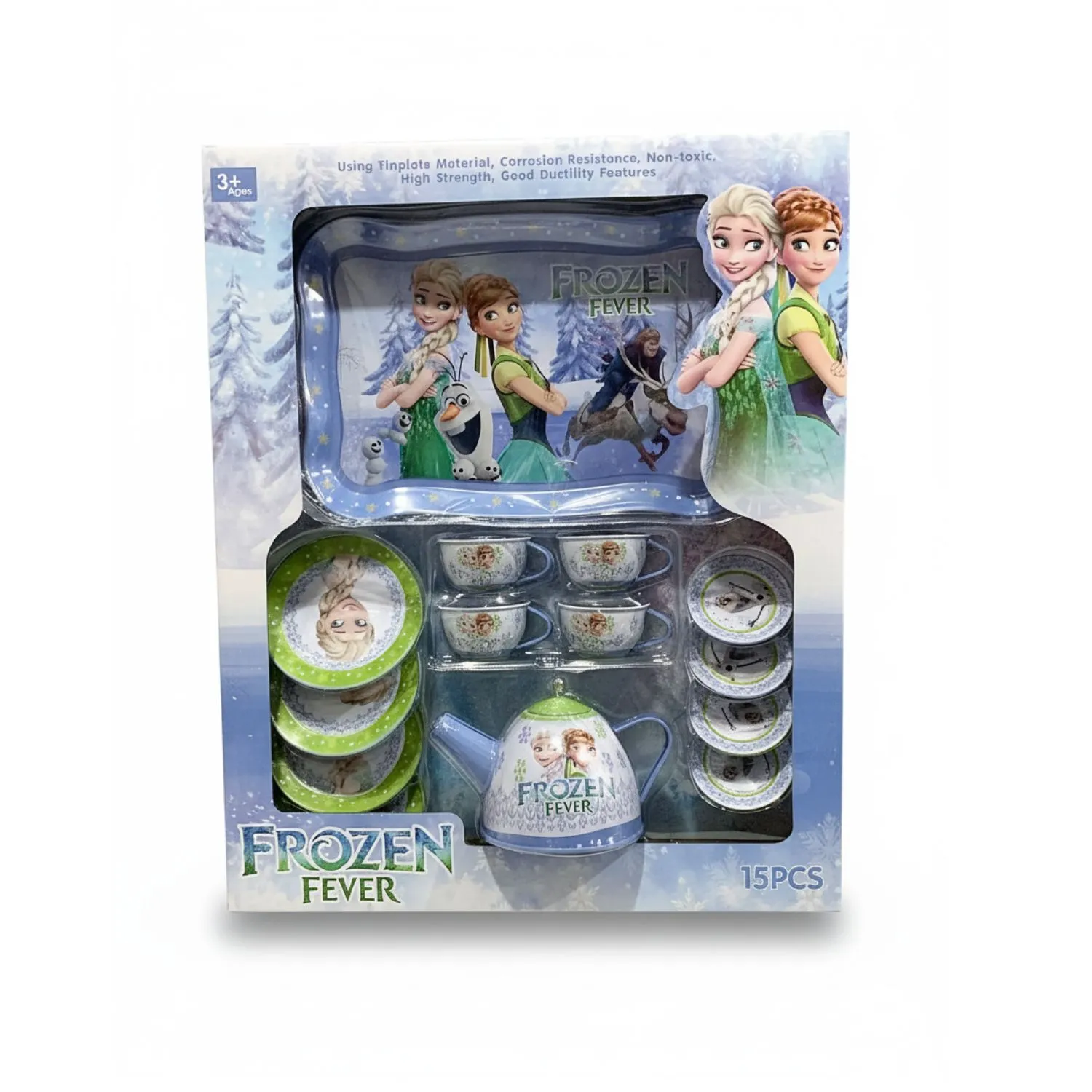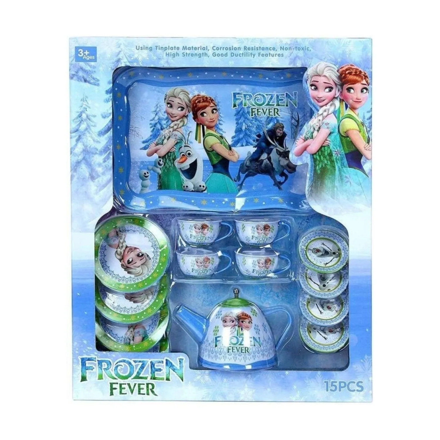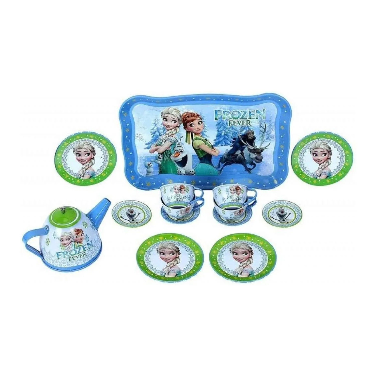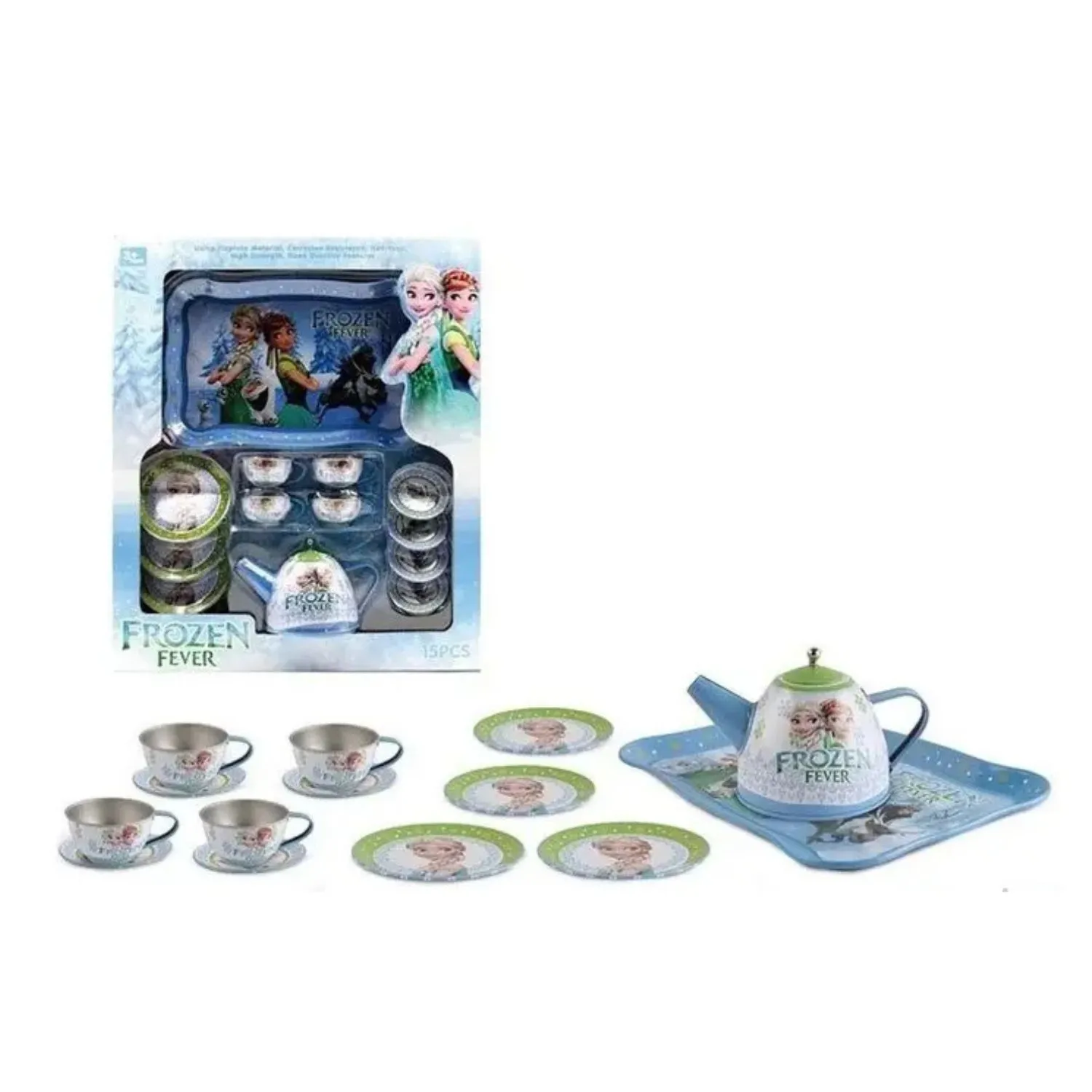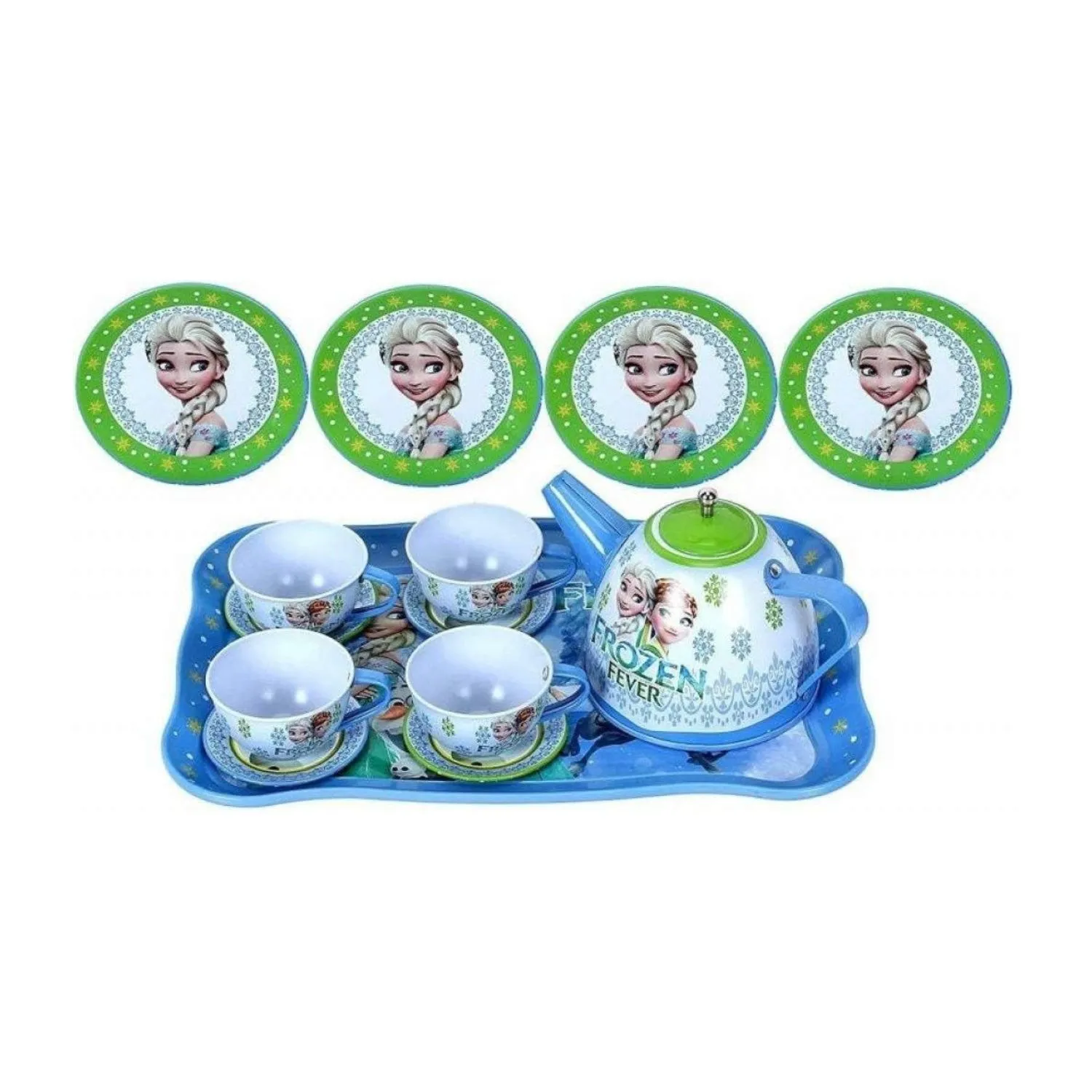 15-Piece Frozen Tin Tea Set for Kids – Metal Teapot & Cups Playset