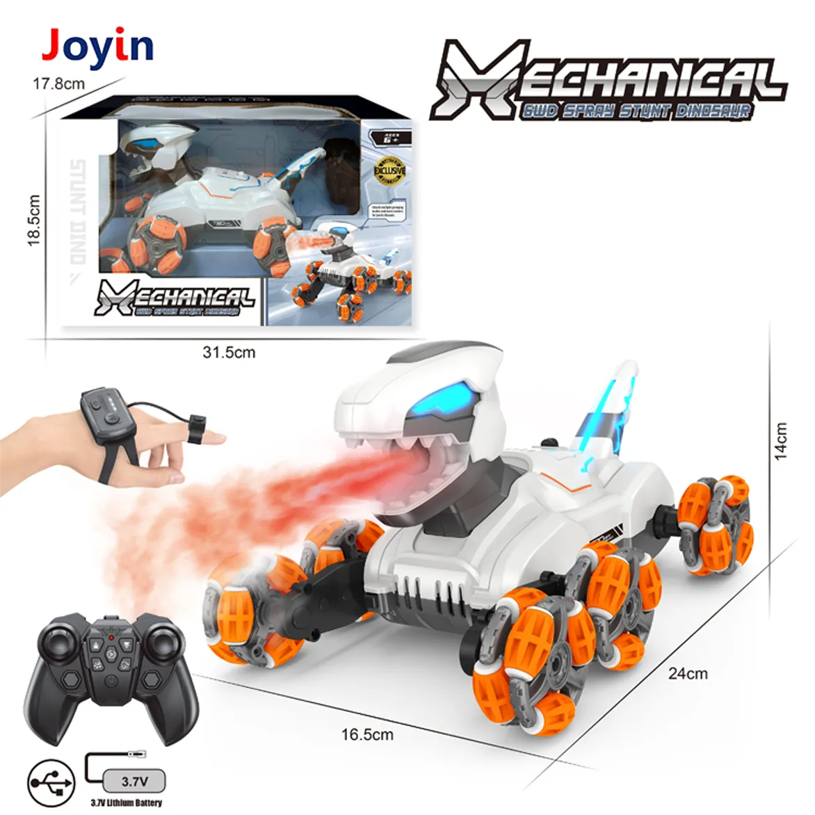 Remote Control Spray Dinosaur Robot Toy | 6 Wheel RC Stunt Car