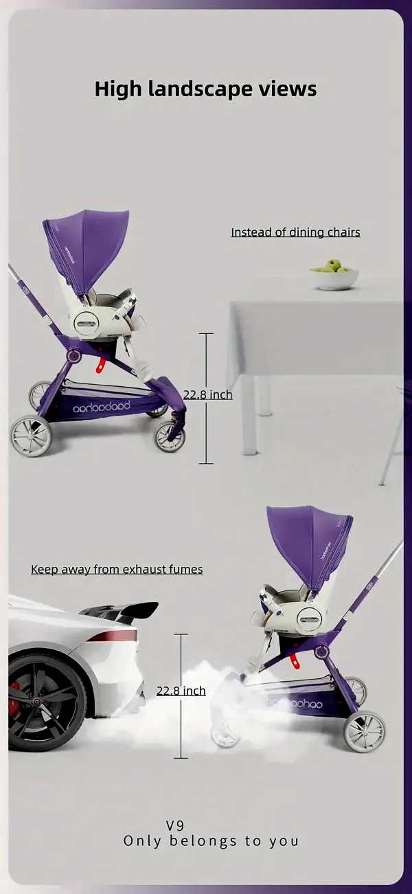 Experience effortless parenting with the V9 Baby Stroller, featuring a high-view design, reclining seat, and lightweight foldable frame — perfect for travel and everyday comfort.