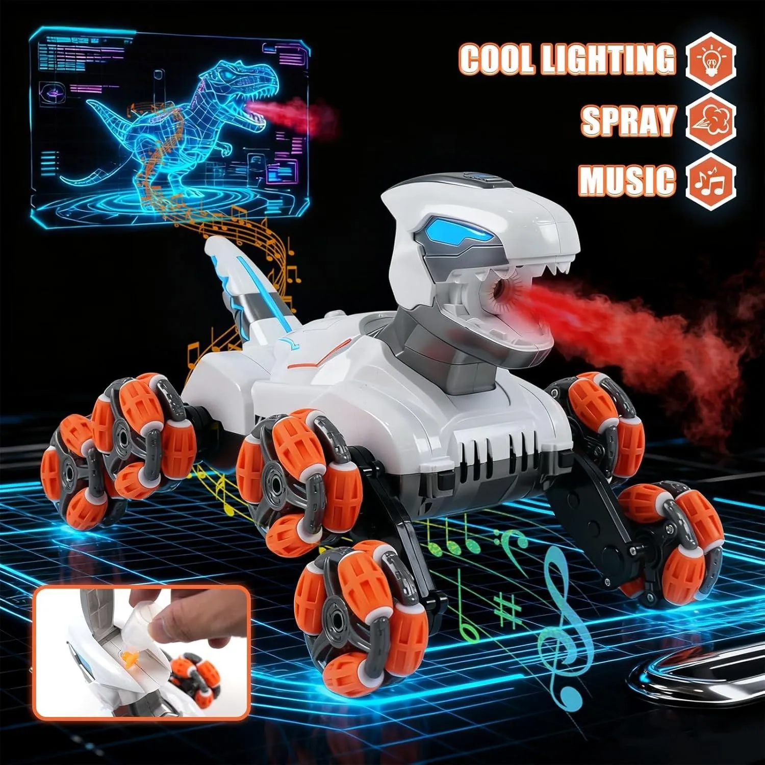 Remote Control Spray Dinosaur Robot Toy | 6 Wheel RC Stunt Car
