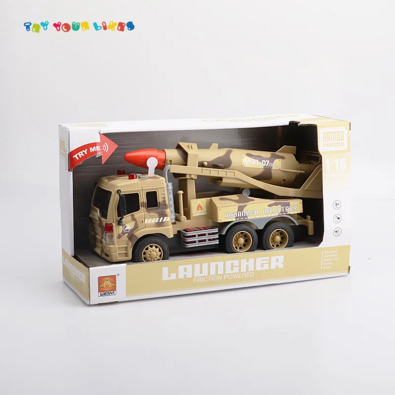 High-quality 1/16 military friction truck toy designed for kids aged 2–4 years. No battery needed—just push and play for endless fun!