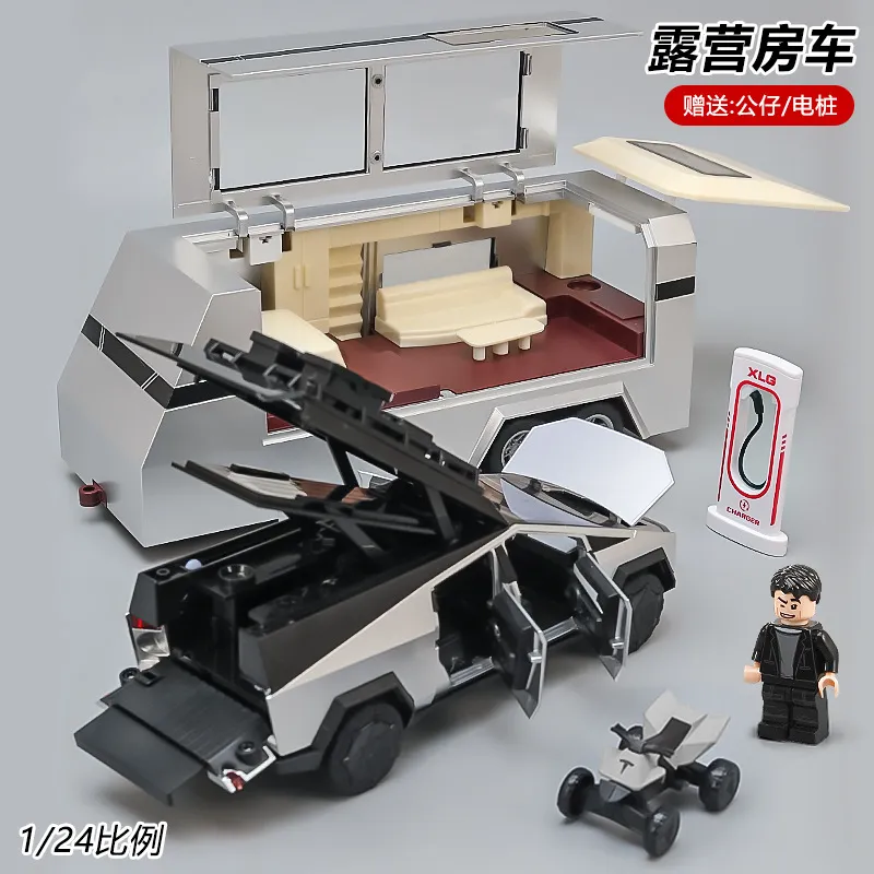 1:24 Tesla-style Camping RV Model with Motorcycle.