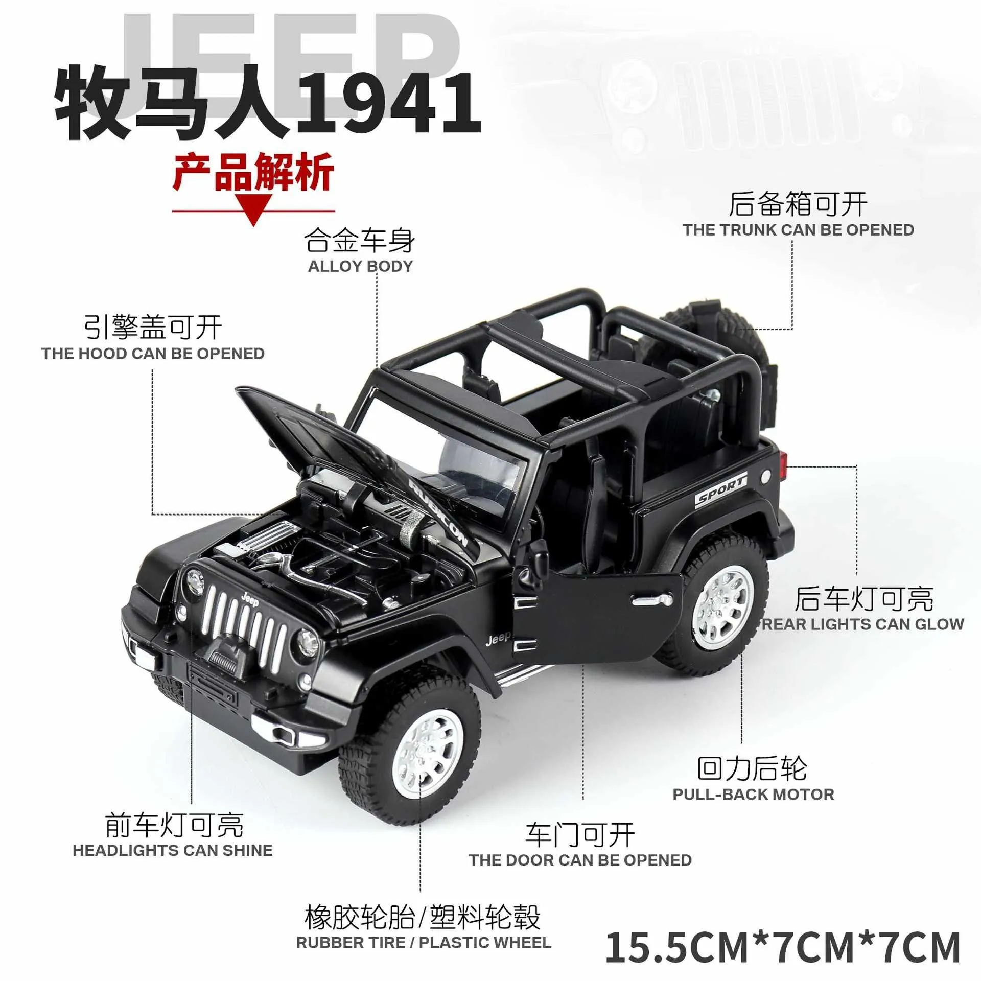 1:32 Jeep Wrangler Rubicon Diecast Car – Sound & Light Model