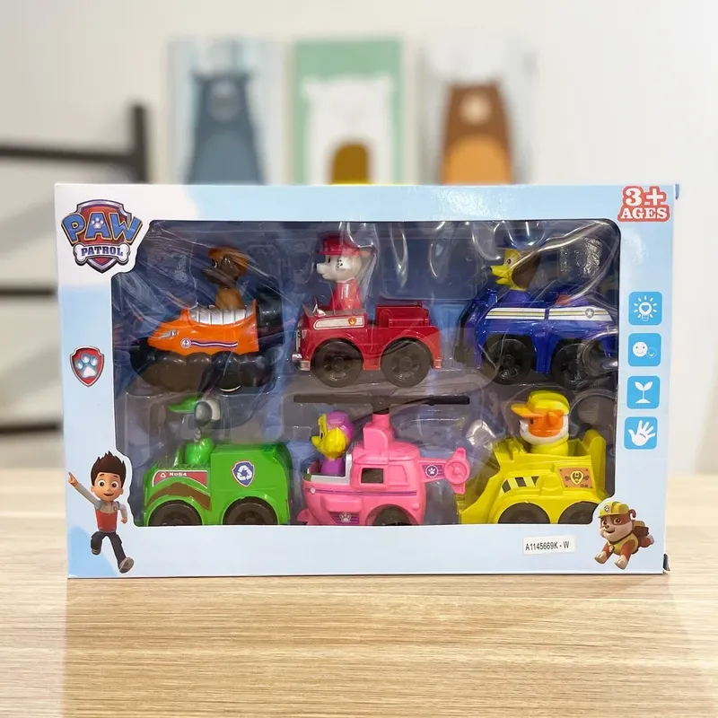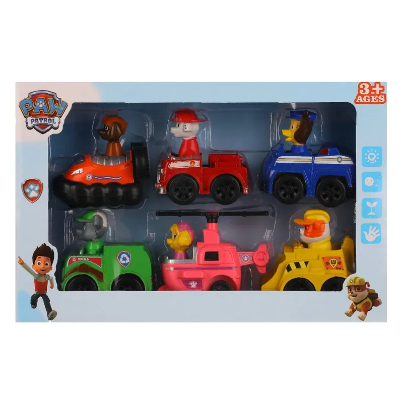 A 6-piece friction car set inspired by Watch Dogs cartoon characters—featuring police cars, fire trucks, tractors, motorboats, and helicopters for endless racing fun.