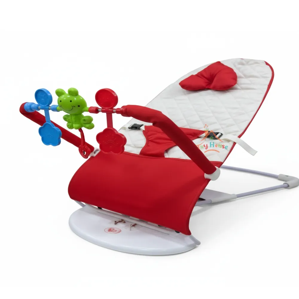 Keep your baby safe, comfy, and entertained with this foldable rocking chair featuring toy stand, music, and safety lock.
