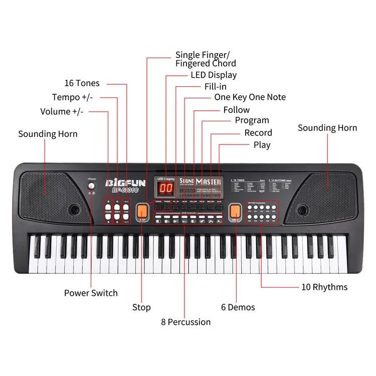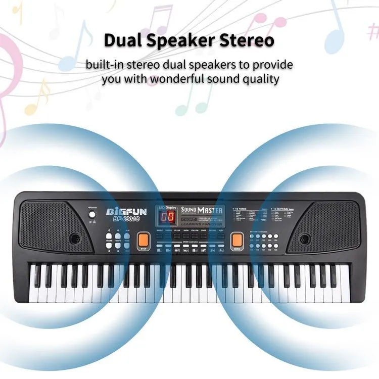 Its lightweight body, durable plastic build, and child-safe components make it ideal for home, school, or outdoor practice. Whether used as a learning tool or for entertainment, the BIGFUN 61 Keys Electronic Organ helps enhance listening skills, memory, hand-eye coordination, and musical confidence.