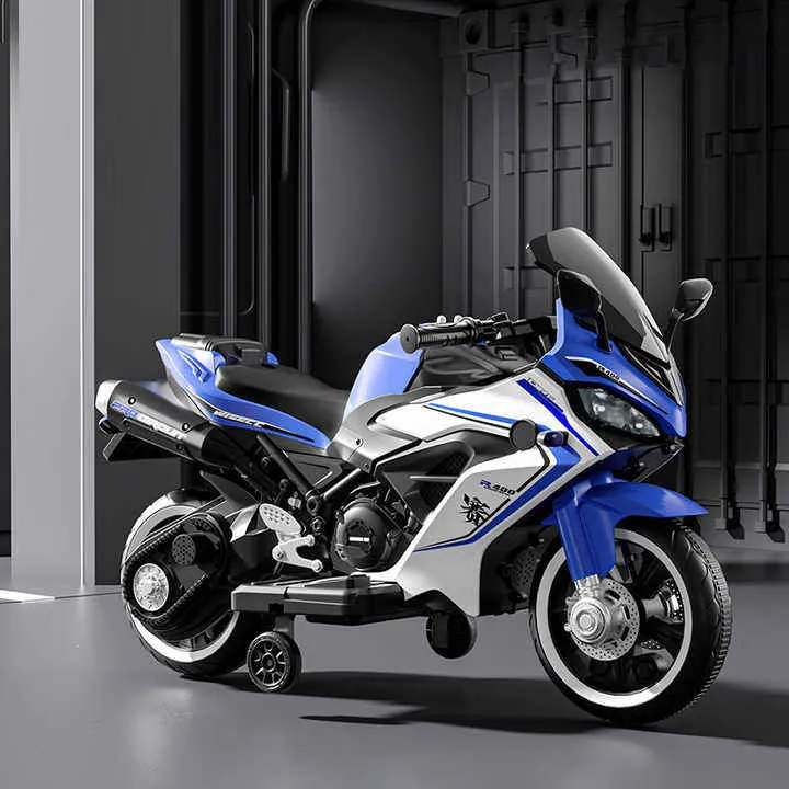CE Unisex Kids Electric Ride-On Luxury Bike 400 – Battery Car with Music & LED Lights ( blue )