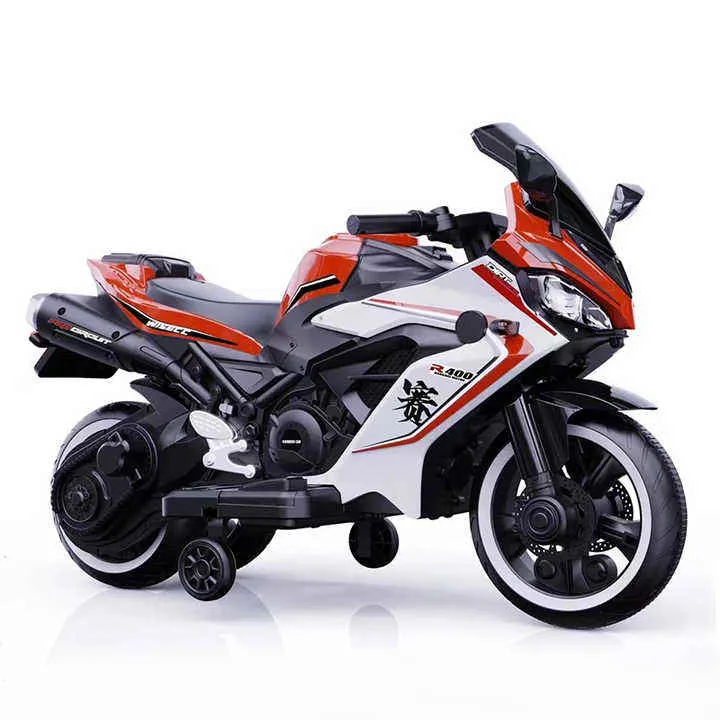 CE Unisex Kids Electric Ride-On Luxury Bike 400 – Battery Car with Music & LED Lights ( Red )