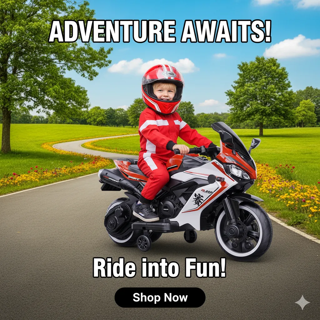 Stylish and safe ride-on electric bike for kids aged 2–7 years. Featuring LED lights, music system, smooth acceleration & durable body design.