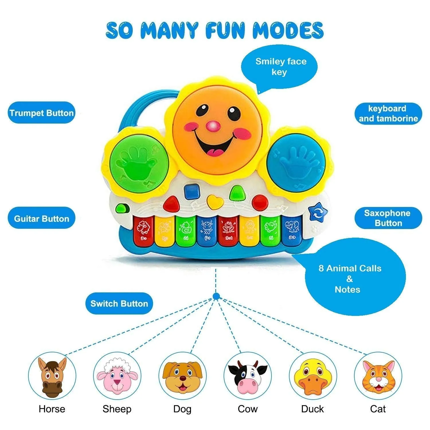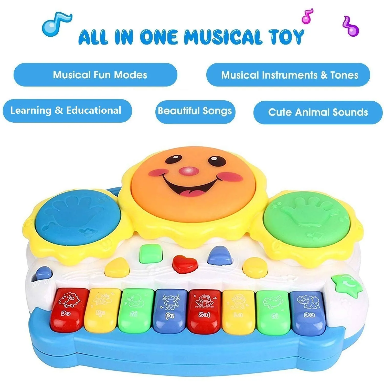Drum Keyboard Musical Toy with Lights & Animal Sounds (Multicolor)