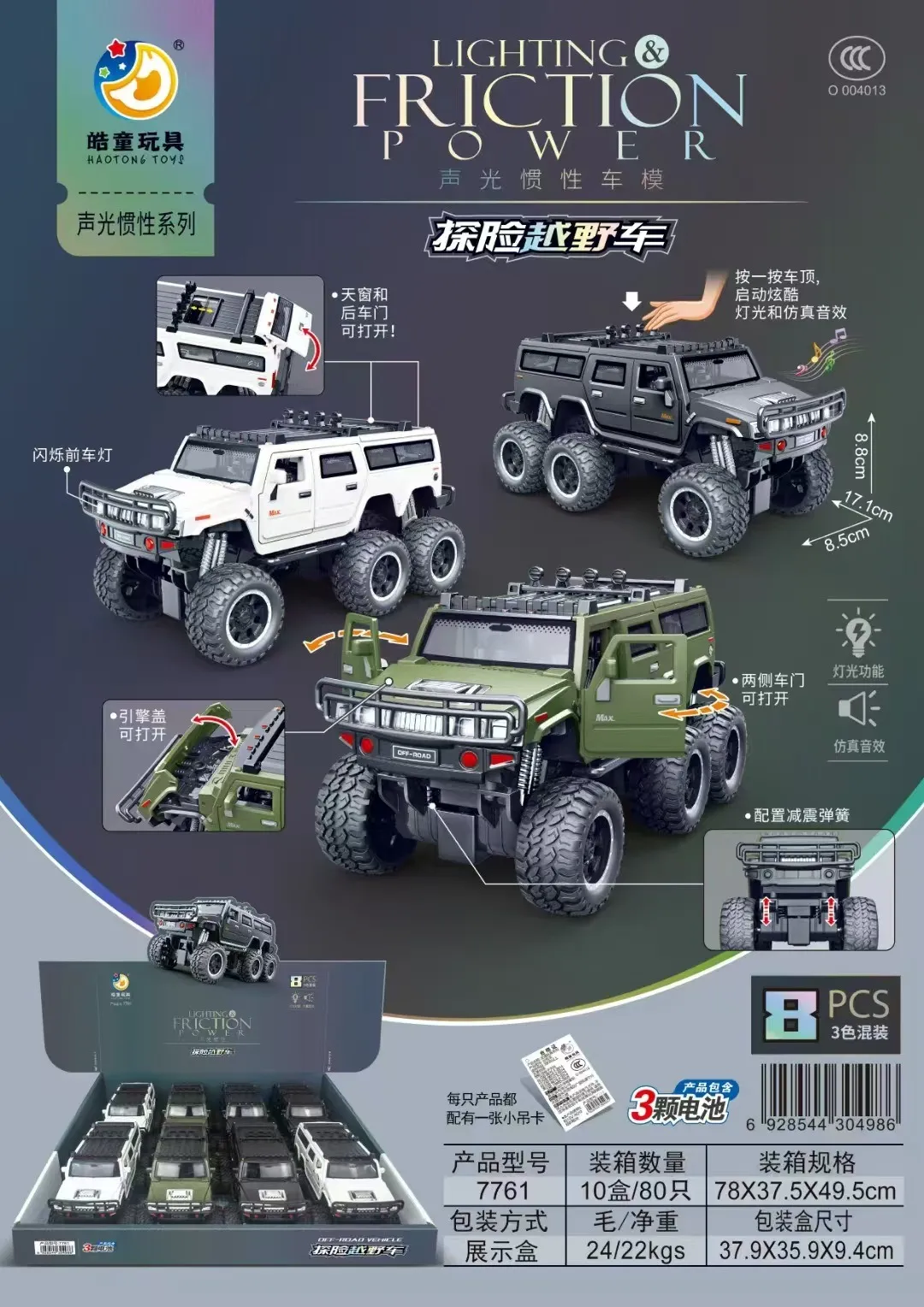 Get ready for adventure with the Haotong 7761 Off-Road Vehicle Set — 8 durable inertia-powered cars with sound, lights, and shock-absorbing springs!
