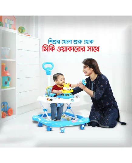 Crafted from high-quality virgin polypropylene (PP) plastic and reinforced with durable, non-toxic fabrics, the Micky Walker ensures strength, durability, and a child-safe experience. Its cyan blue and white design is visually appealing and stimulates curiosity, while built-in fun features keep babies engaged and entertained.