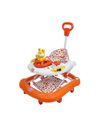 Made from premium virgin polypropylene (PP) plastic and reinforced with quality, child-safe fabrics, the Micky Walker is durable, non-toxic, and safe. Its vibrant orange and white color attracts and engages babies, while fun interactive instruments keep them entertained.