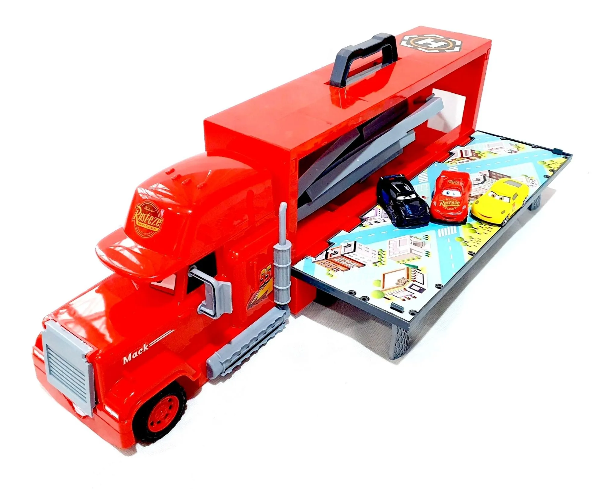 Large Mack Truck Parking Playset with Metal Cars – Kids Toy