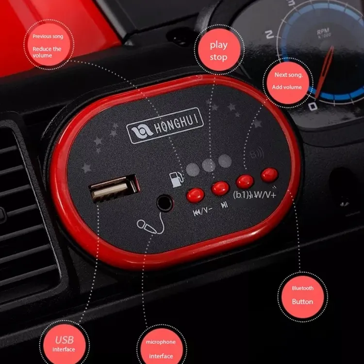 ইন-বিল্ট মিউজিক সিস্টেম, MP3/SD কার্ড ইনপুট, এবং রঙিন LED লাইট বাচ্চাদের রাইডকে আরও আকর্ষণীয় ও উপভোগ্য করে তোলে।