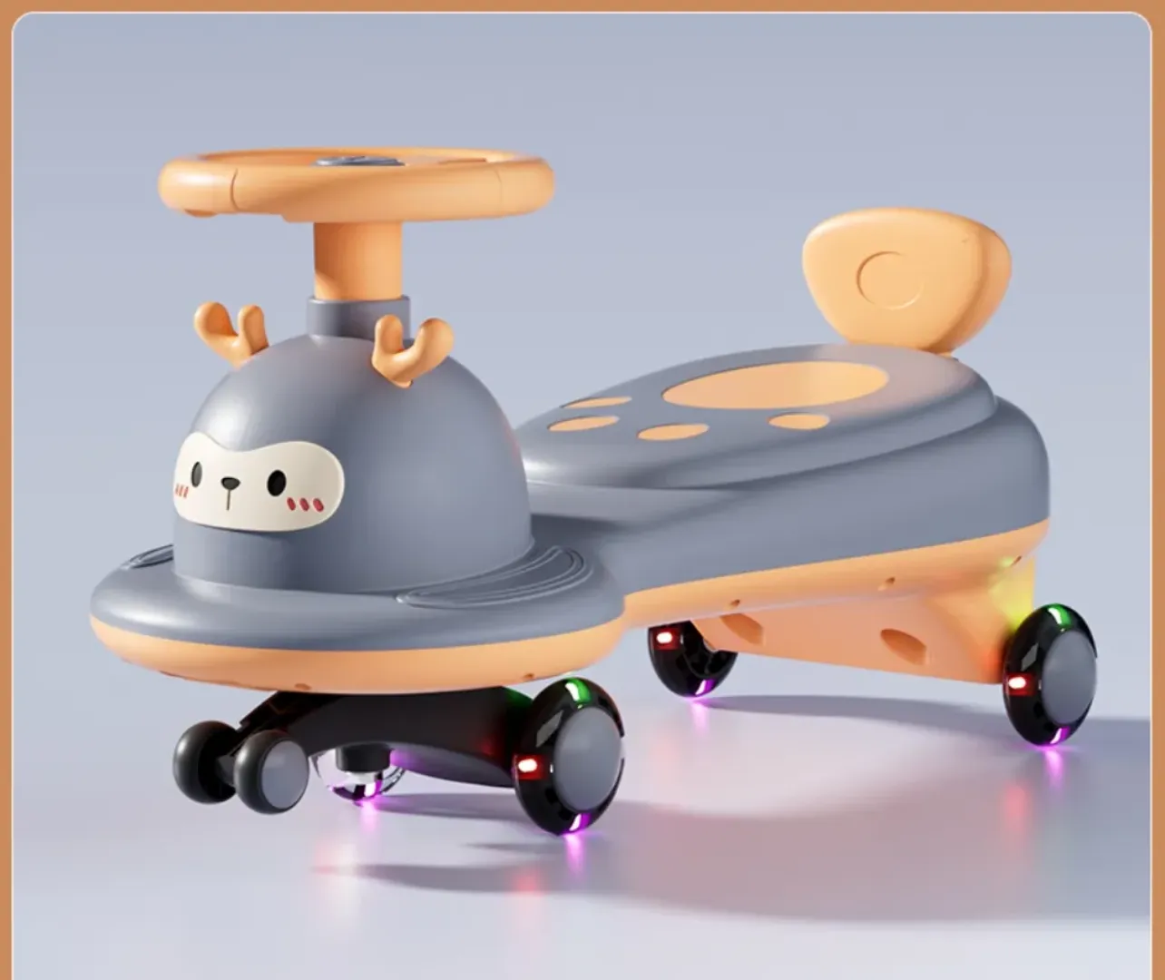 The non-slip seat and comfortable handlebars are designed for little hands, giving kids full control as they steer. Whether on smooth floors, tiles, pavements, or outdoor play areas — this swing car delivers a silent, smooth, and exciting ride every time.