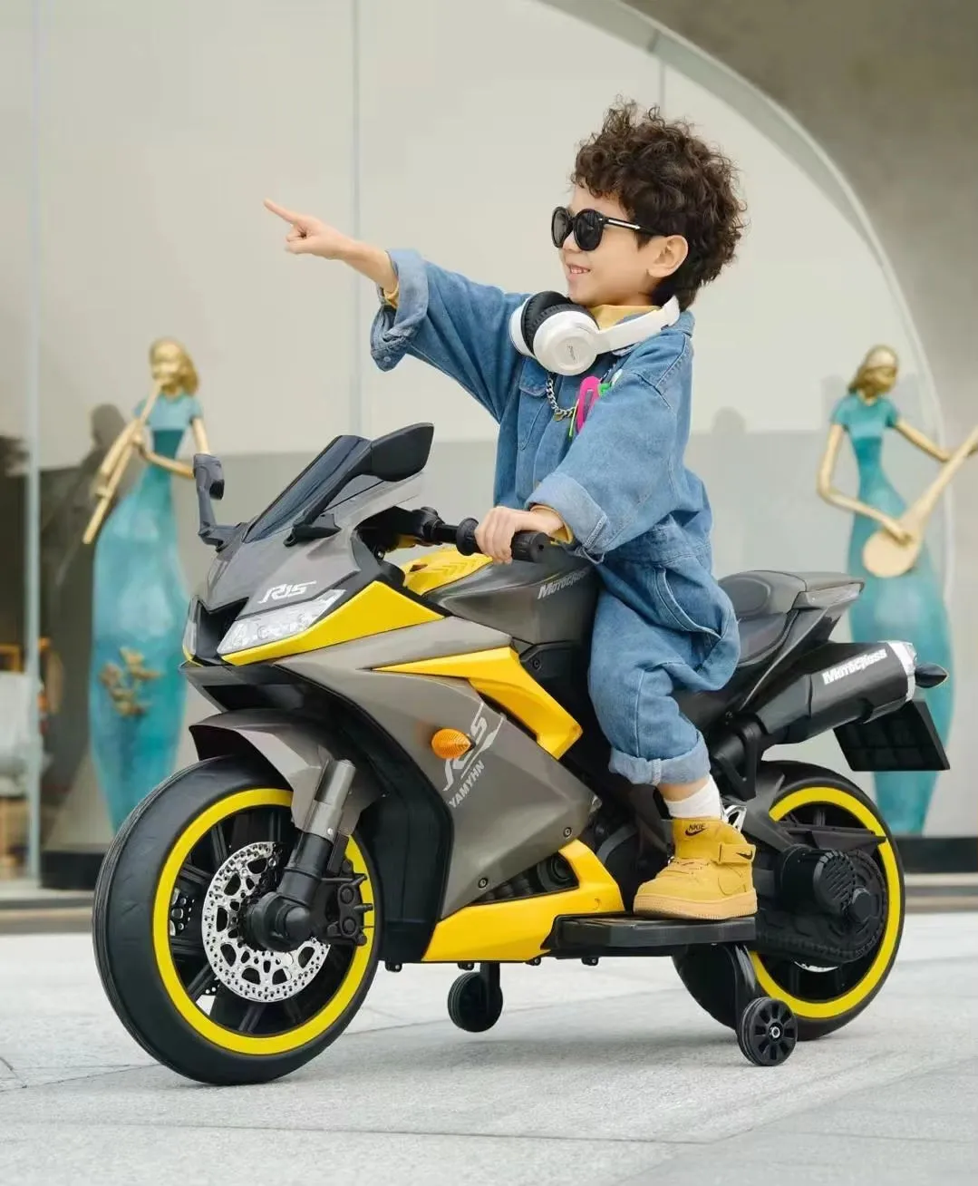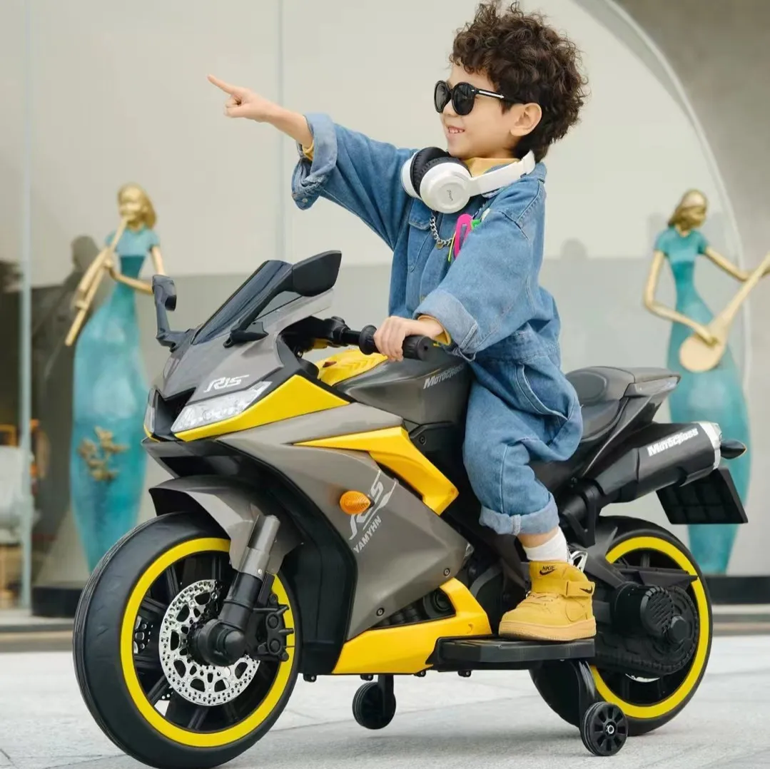 R15 Kids Electric Ride-On Bike – 12V Rechargeable Motorcycle ( Yellow )
